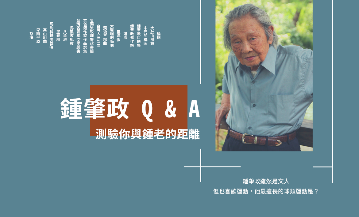 Home 主題特輯鍾肇政 Q & A:15題測驗你與鍾老的距離